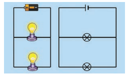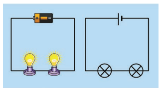 தற்போது இரு மின்விளக்குகள் மற்றும் மின்கலன் ஆகியவற்றை இணைத்து ஓர் சுற்றை உருவாக்குவோம். இரு மின்விளக்குகளும் ஒளிர்கின்றனவா? இரு மின்விளக்குகளும் ஒரே பிரகாசத்துடன் ஒளிர்கின்றனவா? ஓர் மின்விளக்கு ஒளிர்ந்தால் அம்மின்விளக்கின் இடத்தை மாற்றி அமைத்தால் அவ்விளக்கு மிகப்பிரகாசமாக எரியுமா? மின்விளக்கின் வரிசையை மாற்றி அமைத்து, உற்றுநோக்கு.