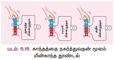 குறிப்பு: தூண்டப்பட்ட மின்னோட்டத்தின் திசை லென்ஸின் விதியால் விளக்கப்படுகிறது,