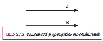 என்ற இரண்டு வெக்டர்கள் ஒரே எண்மதிப்பையும், ஒரே திசையிலும் செயல்பட்டு ஒரே இயற்பியல் அளவினைக் குறிப்பிட்டால், அவ்வெக்டர்கள் சமவெக்டர்கள் என்று அழைக்கப்படும். (படம் 2.12)