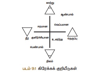 காற்று மற்றும் நெருப்பைக் குறிக்க வடிவியல் உருவங்களை பண்டைய கிரேக்கர்கள் பயன்படுத்தினார்.