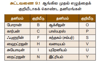 4. சில தனிமங்களின் குறியீடுகள் அவற்றின் அடிப்படையில் எழுதப்படுகின்றன.