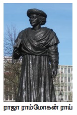 ராஜா ராம்மோகன் ராய் பல்துறை புலமை பெற்றவராவார். அவர் 1828இல் பிரம்ம சமாஜத்தை நிறுவினார். “எங்கும் நிறைந்துள்ள, கண்டறிய முடியாத, மாற்ற முடியாத, இவ்வுலகத்தை உருவாக்கி பாதுகாக்கும் சக்தியை வணங்கி வழிபடுவதில் பிரம்ம சமாஜம் உறுதியாயிருந்தது. இந்து மதத்தைத் தூய்மைப்படுத்தல், ஒரு கடவுள் வழிபாட்டைப் போதித்தல், மனித கண்ணியத்திற்கு முக்கியத்துவம் தருதல், உருவ வழிபாட்டை எதிர்த்தல், சமூகத் தீமையான உடன்கட்டை ஏறுதலை ஒழித்தல் ஆகியன அவருடைய நீண்டகாலத் திட்டங்களாகும். ஆங்கிலேயக் கிழக்கிந்தியக் கம்பெனியில் பணியாற்றி ஓய்வு பெற்ற அவர் பாரசீகம், சமஸ்கிருதம் உள்ளிட்ட பல மொழிகளில் உரையாடக் கூடியவர். அவருடைய சிந்தனைகளும் செயல்பாடுகளும் சமூக சீர்திருத்தங்களின் வழியாக மக்களை அரசியல் ரீதியாக உயர்வடையச் செய்வதை இலக்காகக் கொண்டிருந்தன. அவர் மனித நேயமற்ற சமூகப்பழக்கமான உடன்கட்டை ஏறுதலுக்கு எதிரான மனவுறுதிமிக்க போராளியாவார். 1818 இல் அவர் எழுதிய “கைம்பெண்களை உயிரோடு எரிக்கும் பழக்கத்தை ஆதரிப்போருக்கும் எதிர்ப்போருக்குமிடையே நடைபெற்ற விவாதம்” எனத் தலைப்பிடப்பட்ட கட்டுரையில் எந்த மதமும் கைம்பெண்களை உயிரோடு எரிப்பதை ஏற்றுக்கொள்ளவில்லை என்பதை புனித நூல்களைச் சுட்டிக்காட்டி நிரூபித்தார். கம்பெனி 1829இல் ஒரு சட்டத்தை இயற்றி அதன்மூலம் உடன்கட்டை ஏறுதல் குற்றம் என அறிவித்ததன் மூலம் அவருடைய முயற்சிகள் வென்றன.