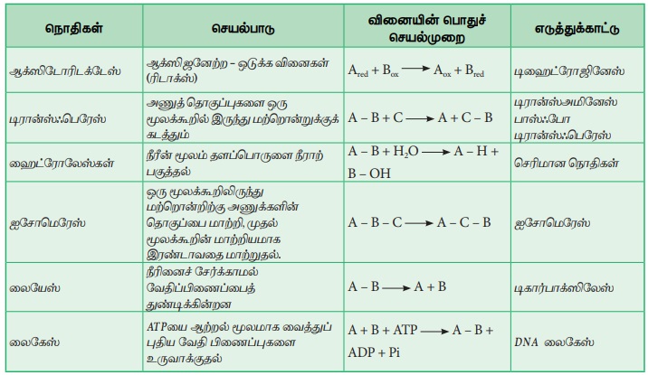 நொதிகள் அவற்றின் செயல்முறையின் அடிப்படையில் ஆறு