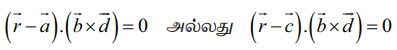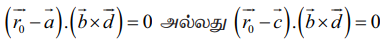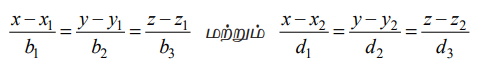 9. ஒரே தளத்தில் அமையும் இணை அல்லாத இரண்டு கோடுகளைக் கொண்டுள்ள தளத்தின் சமன்பாடு (Equation of plane containing two non−parallel coplanar lines)