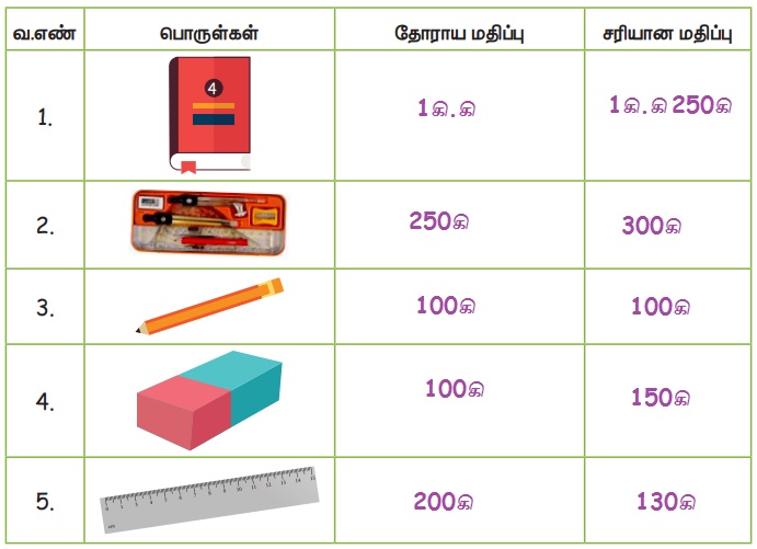 4 ஆம் வகுப்பு கணக்கு : பருவம் 2 அலகு 4 : அளவைகள் : ஒரு பொருளின் எடையை மதிப்பிட்டுப் பின் தராசில் அளந்து சரிபார்த்தல் - அளவைகள் | பருவம் 2 அலகு 4 | 4 ஆம் வகுப்பு கணக்கு : 4 ஆம் வகுப்பு
