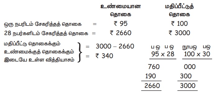 ஒரு சுற்றுலா நிறுவனமானது களப்பயணம் செல்வதற்குத் தலா ₹.95 ஐ சேகரித்தன. 28 நபர்களிடம் சேகரித்தத் தொகையினை மதிப்பிடுக.