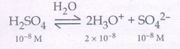 [H3O+] = 2 × 10-8 (H2SO4 லிருந்து) +10-7 (நீரிலிருந்து)