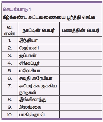 உலோக பணம், நெகிழிப் பணம் ஆகியவற்றை தயார் செய்யவும் (பண்டமாற்று முறையும் சேர்த்து).