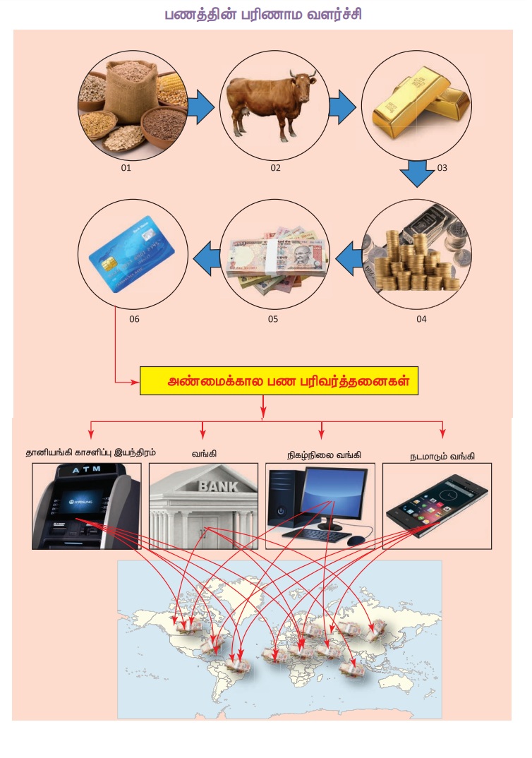 அலகு 1 | பொருளியல் | எட்டாம் வகுப்பு சமூக அறிவியல் - பணத்தின் பரிணாம வளர்ச்சி | 8th Social Science : Economics : Chapter 1 : Money, Savings and Investments
