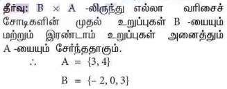 3. B × A = {(-2, 3), (-2, 4), (0, 3), (0,4), (3,3), (3,4)} எனில், A மற்றும் B ஆகியவற்றைக் காண்க.