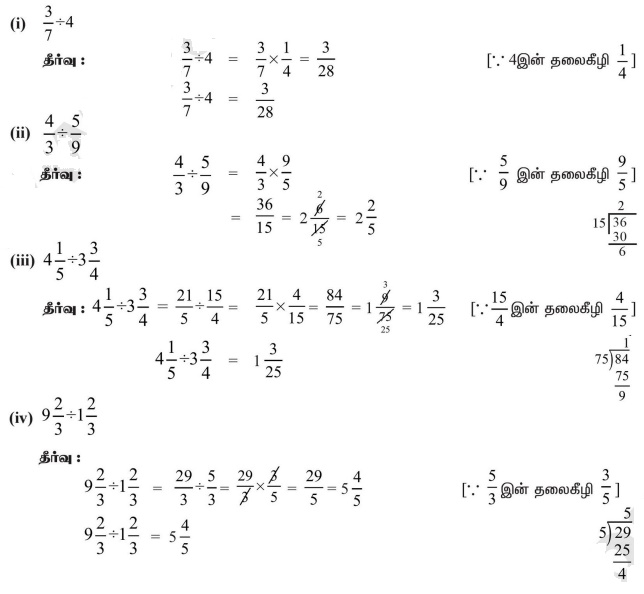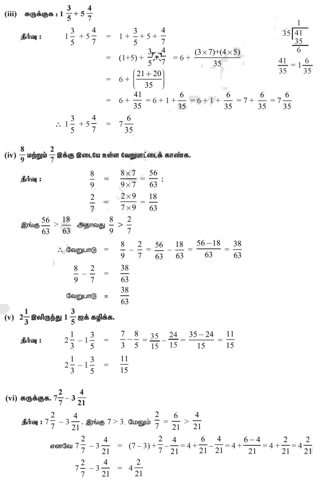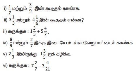 கேள்வி பதில் மற்றும் தீர்வுகள் | பின்னங்கள் | பருவம் 3 அலகு 1 | 6 ஆம் வகுப்பு கணக்கு - பயிற்சி 1.1 | 6th Maths : Term 3 Unit 1 : Fractions