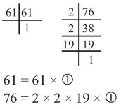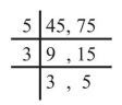15, 25, 75ன் மீ.சி.ம. = 5 × 3 × 5 =75