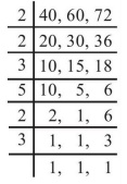இது மீ.சி.ம. தொடர்பான கணக்கு ஆகும். ஆகவே, நாம் 40, 60, 72 ஆகிய எண்களின் மீ.சி.ம. – வைக் காண வேண்டும்.