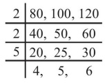 80, 100, 120ன் மீ.பெ.கா.= 2 × 2 × 5 = 20