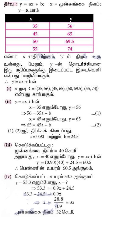 (iv) உயரம் 53.3 அங்குலம் எனில், அந்த நபரின் முன்னங்கையின் நீளத்தைக் காண்க.