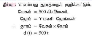 9. ஒரு விமானம் 500 கி.மீ/மணி வேகத்தில் பறக்கிறது. விமானம் 'd' தொலைவு செல்வதற்கு ஆகும் காலத்தை t (மணியில்) -ன் சார்பாக வெளிப்படுத்துக.