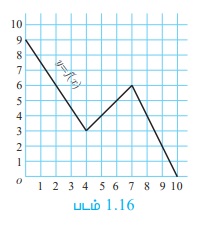 4. படம் 1.16-ல் கொடுக்கப்பட்ட வரைபடம் f (x)-யின் மூலமாக, f(9) = 2 என்பது தெளிவாகிறது.