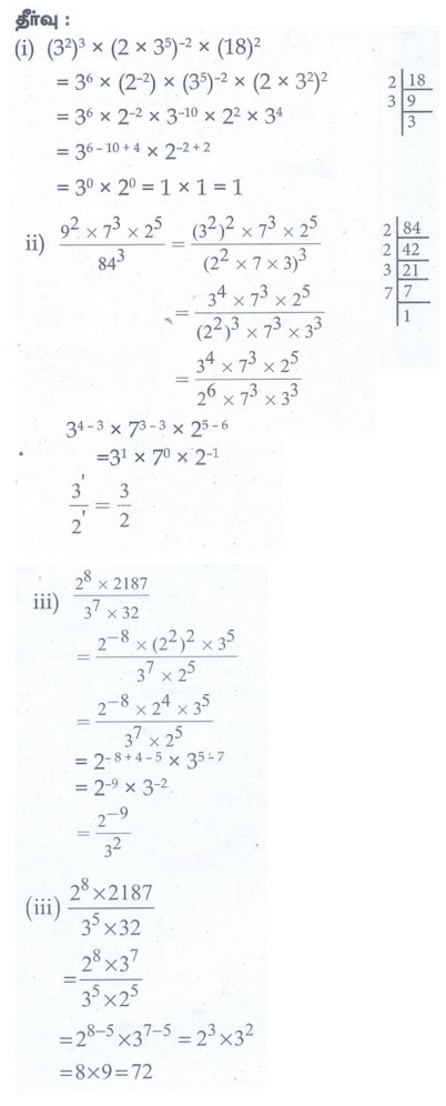 கேள்வி பதில்கள், தீர்வுகள் | எண்கள் | அலகு 1 | 8 ஆம் வகுப்பு கணக்கு - பயிற்சி 1.6 (அடுக்குக்குறிகளும் படிகளும்) | 8th Maths : Chapter 1 : Numbers