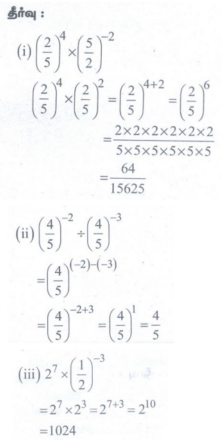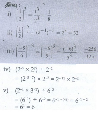 (iii) படி விதியைப் பயன்படுத்தி, (37)−2 = 35 ஆகும். விடை: தவறு