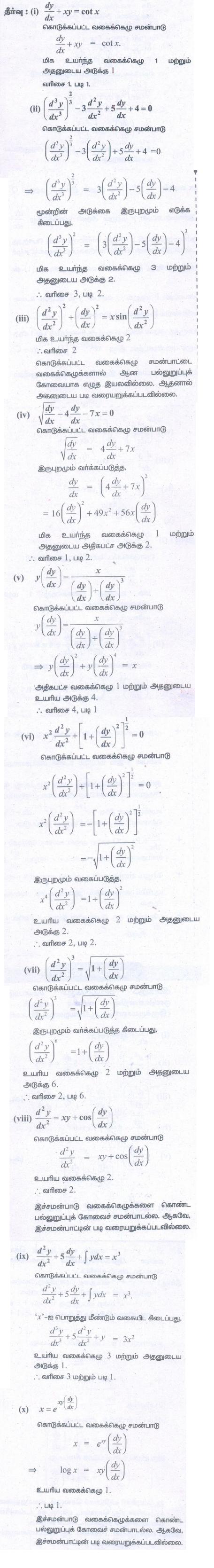 12th Maths : UNIT 10 : Ordinary Differential Equations : Exercise 10.1: Differential Equation, Order, and Degree Problem Questions with Answer, Solution in Tamil : 12th Standard