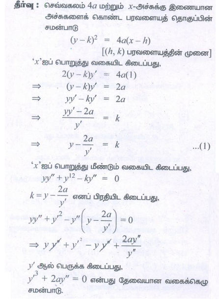 4. செவ்வகலம் 4a மற்றும் x - அச்சுக்கு இணையான அச்சுகளைக் கொண்ட பரவளையத்தொகுப்பின் வகைக்கெழுச் சமன்பாட்டைக் காண்க.