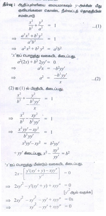 6. ஆதிப்புள்ளியை மையமாகவும், y -அச்சின் மீது குவியங்களையும் கொண்ட நீள்வட்டத்தொகுதியின் வகைக்கெழுச் சமன்பாட்டைக் காண்க.