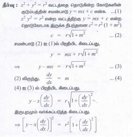 2. x2+y2 =r2 எனும் வட்டத்தைத் தொடும் எல்லா நேர்க்கோடுகளின் வகைக்கெழுச்சமன்பாட்டைக் காண்க.