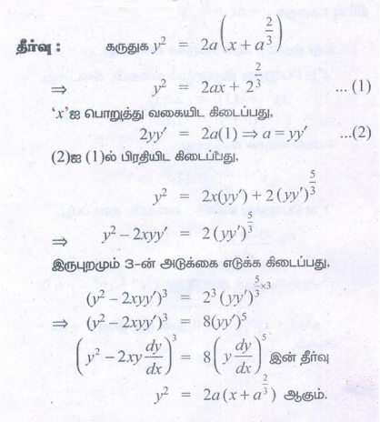 7. y2 = 2a (x +a2/3)எனும் வளைவரைத் தொகுதியைக் குறிக்கும் வகைக்கெழுச் சமன்பாடு