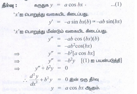 8. y = a cosbx என்பது d2y/dx2 + b2y = 0 எனும் வகைக்கெழுச் சமன்பாட்டின் தீர்வாகும் எனக்காட்டுக.