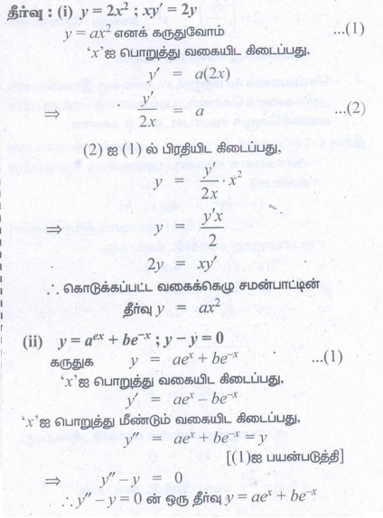 2. y = emx எனும் சார்பு கொடுக்கப்பட்ட வகைக்கெழுச் சமன்பாட்டிற்கு தீர்வாக அமையுமாறுm -ன் மதிப்புகளைக் காண்க.