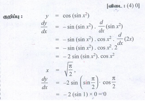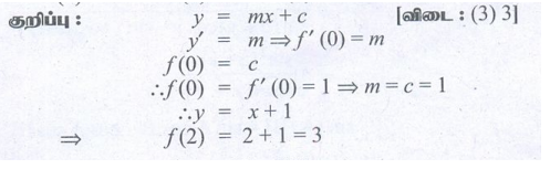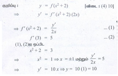 (2) y = f(x2+2) மற்றும் ƒ’ (3) = 5 எனில் , x=1-ல் dy / dx என்பது