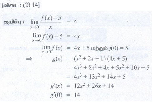 (14) f(x) = x + 2 எனில், x = 4-ல் ƒ'(f (x)) -ன் மதிப்பு
