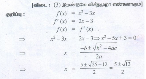(4) f(x) = x2 - 3x எனில், f(x) = ƒ ‘(x) 6700 என அமையும் புள்ளிகள்