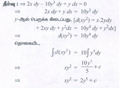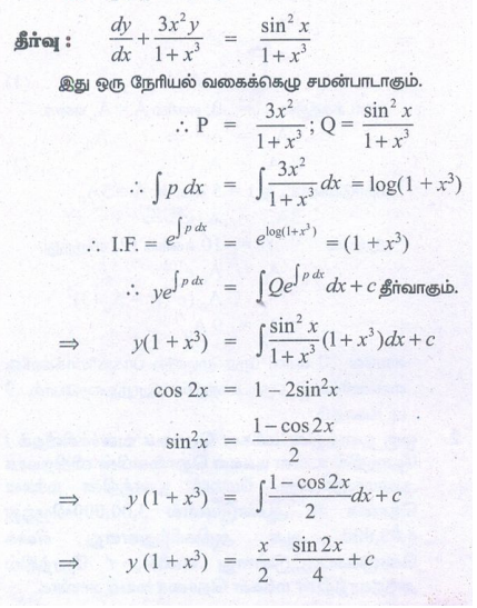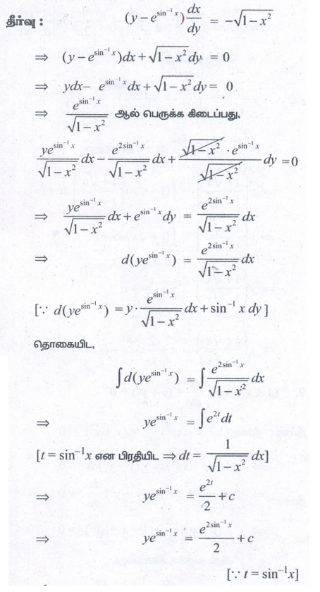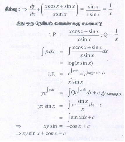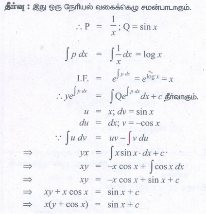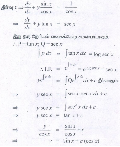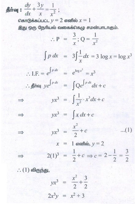 12th Maths : UNIT 10 : Ordinary Differential Equations : Exercise 10.7: First Order Linear Differential Equations Problem Questions with Answer, Solution in Tamil : 12th Standard