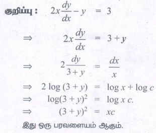 7. 2x dy/dx – y = 3 எனும் வகைக்கெழுச் சமன்பாட்டின் தீர்வு குறிப்பிடுவது