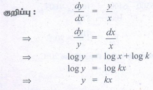 6. dy/dx = y/x எனும் வகைக்கெழுச் சமன்பாட்டின் பொதுத்தீர்வு