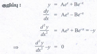 5. y = Aex + Be-x, இங்கு A, B என்பன ஏதேனும் இரு மாறிலிகள், எனும் வளைவரைத்தொகுதியின் வகைக்கெழுச் சமன்பாடு