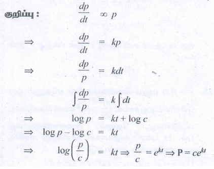 22. ஏதேனும் ஒரு வருடம் t-ல் உள்ள P-ன் பெருக்க வீதமானது மக்கள் தொகைக்கு விகிதமாக அமையும் எனில், பின்னர்