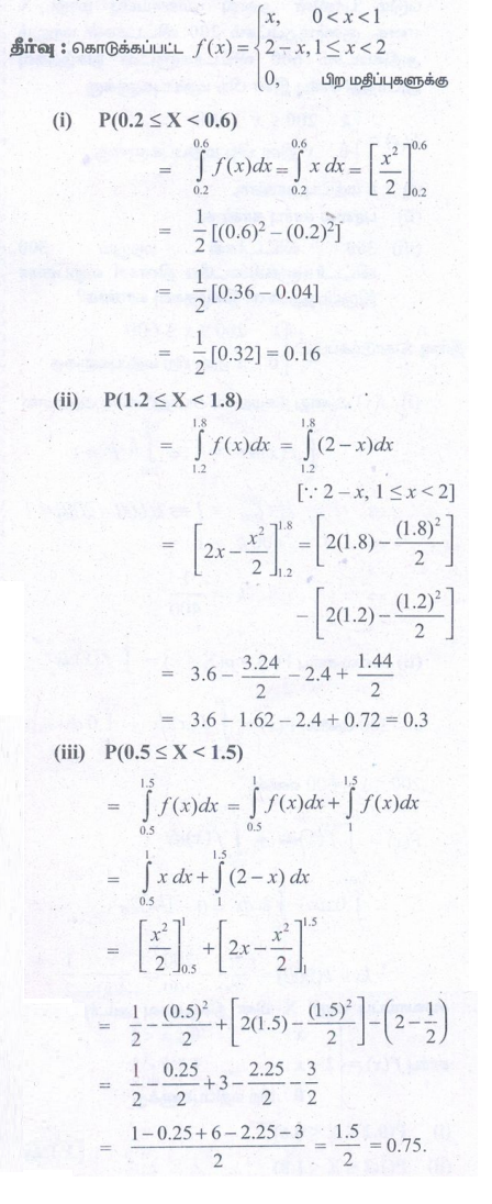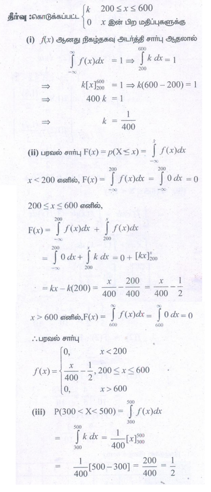 கேள்விகளுக்கான பதில்கள், தீர்வுகள் - பயிற்சி 11.3 : தொடர்ச்சியானப் பரவல்கள் (Continuous Distributions) | 12th Maths : UNIT 11 : Probability Distributions