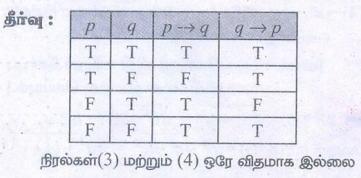 10. p → q மற்றும் q → p ஆகியவைகள் சமானமற்றவை எனக் காட்டுக.
