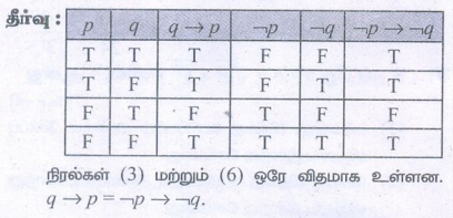 9. q → p ≡¬ p →¬q என நிறுவுக.