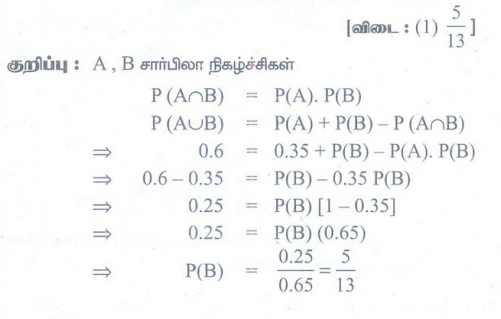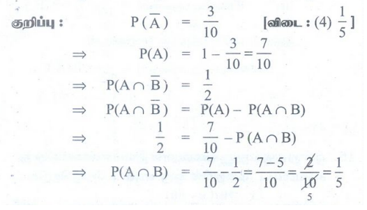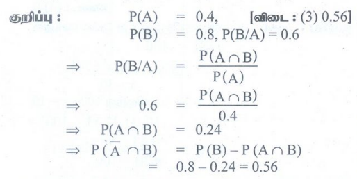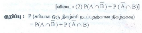 (4) A மற்றும் B என்பன இரு நிகழ்ச்சிகள் எனில் சரியாக ஒரு நிகழ்ச்சி நிகழ்வதற்கான நிகழ்தகவானது