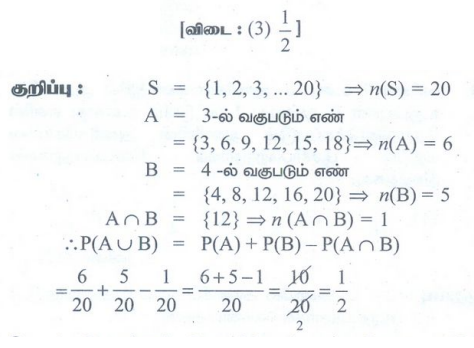 (2) {1,2,3,...,20} என்ற கணத்திலிருந்து ஒரு எண் தேர்ந்தெடுக்கப்படுகிறது. அந்த எண் 3 அல்லது 4 ஆல் வகுபடுவதற்கான நிகழ்தகவு