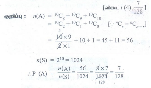 (23) பத்து நாணயங்களைச் சுண்டும்போது குறைந்தது 8 தலைகள் கிடைப்பதற்கான நிகழ்வு
