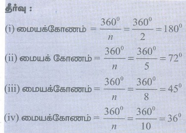 3. நிழலிடப்பட்டுள்ள வட்டக்கோணப் பகுதிகளின் மையக்கோணங்களைக் காண்க. (ஒவ்வொரு வட்டமும் சம அளவு வட்டக்கோணப் பகுதிகளாகப் பிரிக்கப்பட்டுள்ளன)