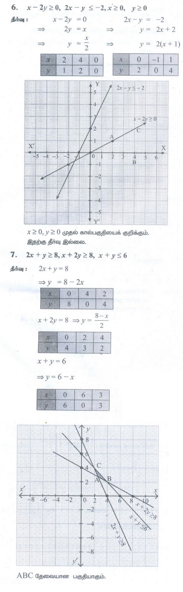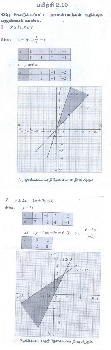 11th Mathematics : UNIT 2 : Basic Algebra : Exercise 2.10: Graphical Representation of Linear Inequalities Problem Questions with Answer, Solution | Basic Algebra | Mathematics in Tamil : 11th Standard