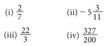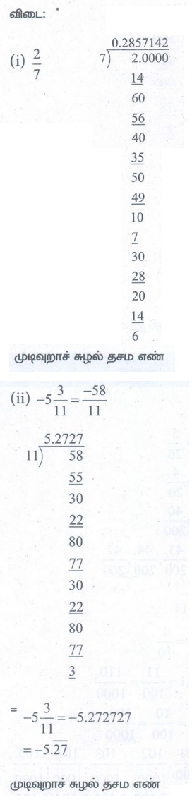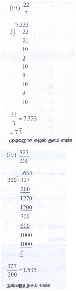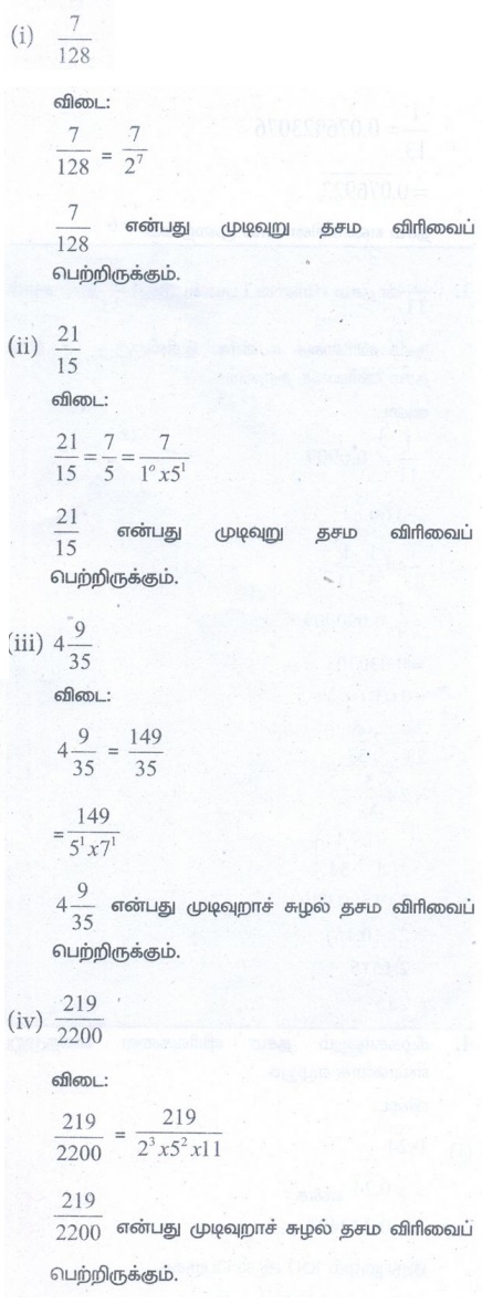 1. கீழ்க்காணும் விகிதமுறு எண்களைத் தசம எண்ணாக மாற்றி அது எவ்வகைத் தசம விரிவு என்பதையும் கூறுக: