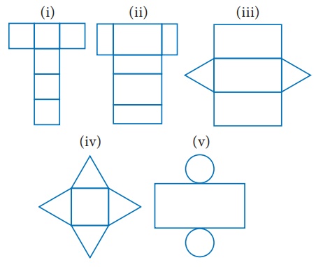 3. பின்வரும் வலைகள் எந்த 3−D வடிவங்களைக் குறிக்கின்றன? அவற்றினை வரைக.