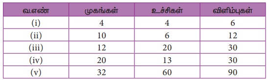 5. கீழேக் கொடுக்கப்பட்டுள்ள அட்டவணையில் உள்ள விவரங்களுக்கு ஆய்லர் சூத்திரத்தைச் சரிபார்க்க.