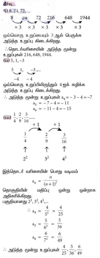 கேள்வி பதில்கள் மற்றும் தீர்வுகள் | கணக்கு - பயிற்சி 2.4 : தொடர் வரிசைகள் | 10th Mathematics : UNIT 2 : Numbers and Sequences